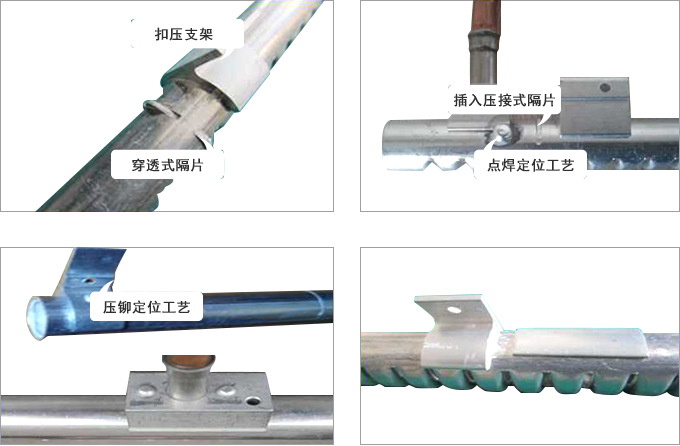 扣壓式支架,支架預涂干釬劑,翻邊式堵帽,壓入是隔片或穿透式隔片領先的微通道制冷技術、創新的產品結構設計